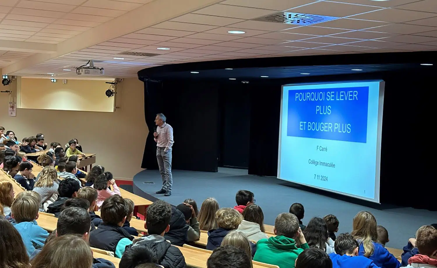 Lors de cette rencontre, l’intervenant a privilégié les échanges avec les élèves, en s’appuyant sur des exemples concrets et des études scientifiques accessibles. Il a ainsi permis aux collégiens de mieux comprendre le fonctionnement du corps, les bénéfices de l’activité physique et les risques liés à la sédentarité.